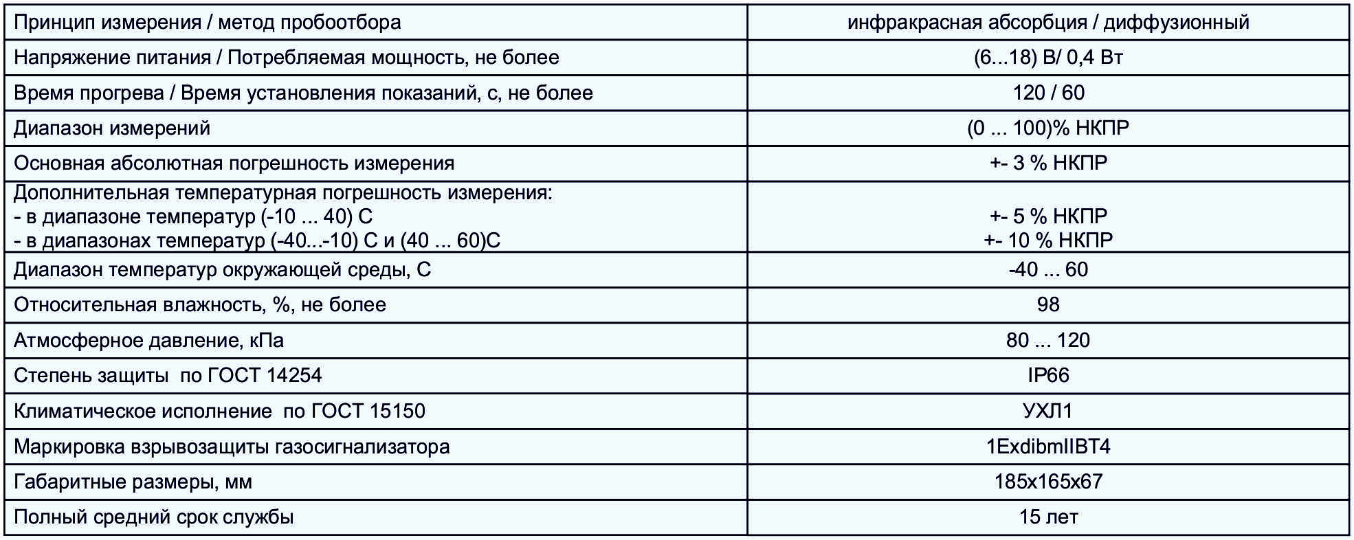 В газосигнализаторе (рис. 1) применяется оптический датчик газа, который является сменным элементом и заменяется после окончания его срока службы (8 лет). Газосигнализатор может быть настроен на несколько порогов срабатывания в %-ах НКПР (до 5-ти). На лицевой панели газосигнализатора расположены светодиодные индикаторы: - “ПОРОГ” - для сигнализации достижения аварийного порога концентрации; - “НЕИСПРАВНОСТЬ” - для сигнализации неисправности (напряжение ниже нормы, нет связи с оптическим датчиком газа), - “ПИТАНИЕ” - для индикации наличия питающего напряжения, и кнопка “СБРОС”, предназначенная для сброса газосигнализатора в исходное состояние после достижения аварийного блокирующего порога концентрации. Газосигнализатор имеет два кабельных ввода, что позволяет одним кабелем соединять несколько газосигнализаторов, а также соединять газосигнализатор с уровнемерами и датчиками (уровня, давления, температуры), образуя единую систему аварийной защиты объекта на основе СИ СЕНС. Корпус газосигнализатора выполнен из коррозионно-стойкой стали 12Х18Н10Т.