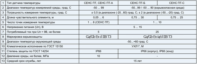 Датчики температуры предназначены для преобразования температуры жидких и газообразных сред, в электрический цифровой сигнал протокола системы измерительной “СЕНС” (СИ СЕНС).